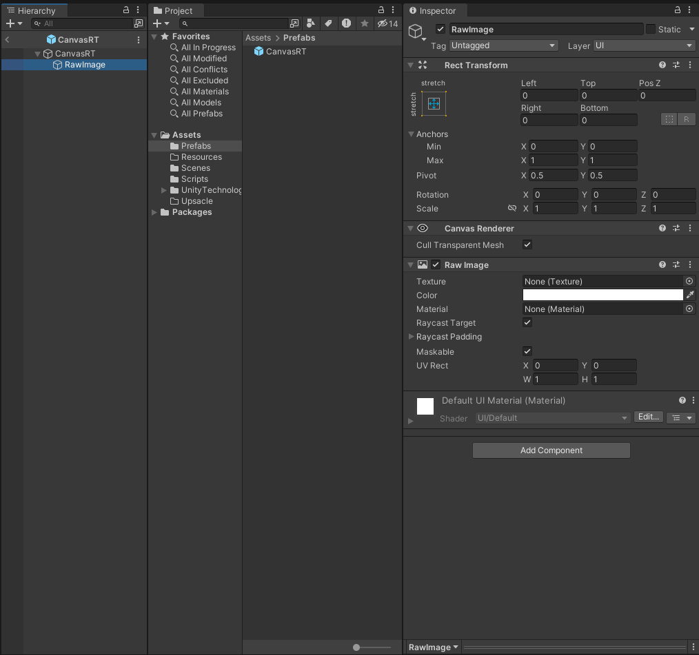 2. 렌더 텍스처를 담기 위한 캔버스와 하위의 RawImage를 하나 만든다.