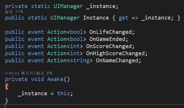 UI매니저는 Awake에서 초기화하는 싱글턴이고 다른 스크립트는 OnEnable에서 이벤트 등록을 했는데 UI 매니저의 싱글턴 인스턴스가 null이라는 오류가 나왔다.