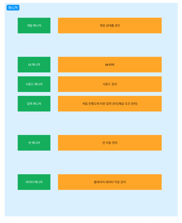 먼저 필요한 매니저들에 대해 정리를 해보고