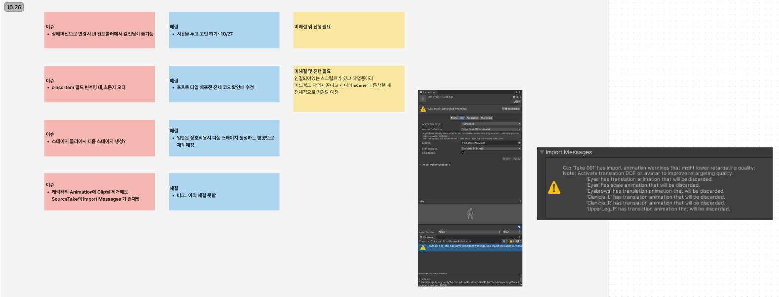 오늘은 캐릭터 점프와 슬라이딩 쪽을 구현할 예정이었으나 캐릭터 상태머신과 애니메이션이 더 필요하다고 하여 상태머신 쪽을 먼저 구현하게 되었다. Input을 받아와 이동에 적용하는데 구조를 변경하는 작업이 동반되어서 시간이 좀 걸렸던 것 같다. 리팩토링은 할 땐 귀찮은데 하고 나면 괜히 뿌듯한 작업인 것 같다. 내일도 파이팅!