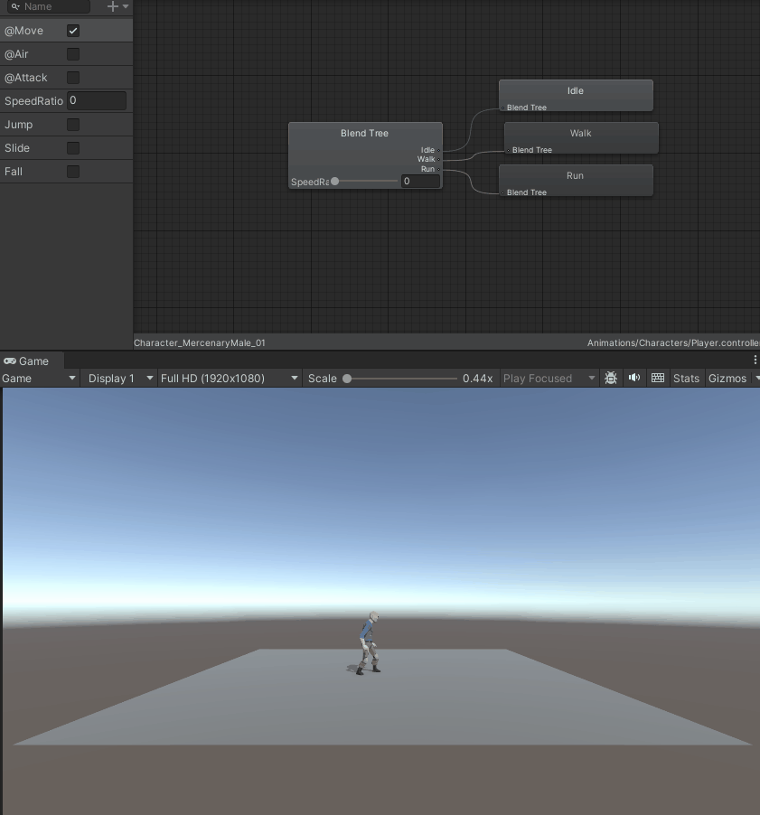 애니메이션은 블렌드 트리를 사용하였다.