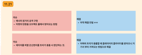 - 코루틴을 중간에 멈추는 부분이 있는데 여러 입력이 들어왔을 시 중간에 변이가 실행 중인 코루틴이 멈춰서 두 가지 문제가 나왔던 것임