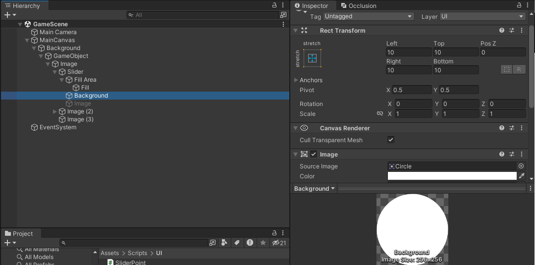 목표 : 폭탄 슬라이더의 원형 채우기를 구현