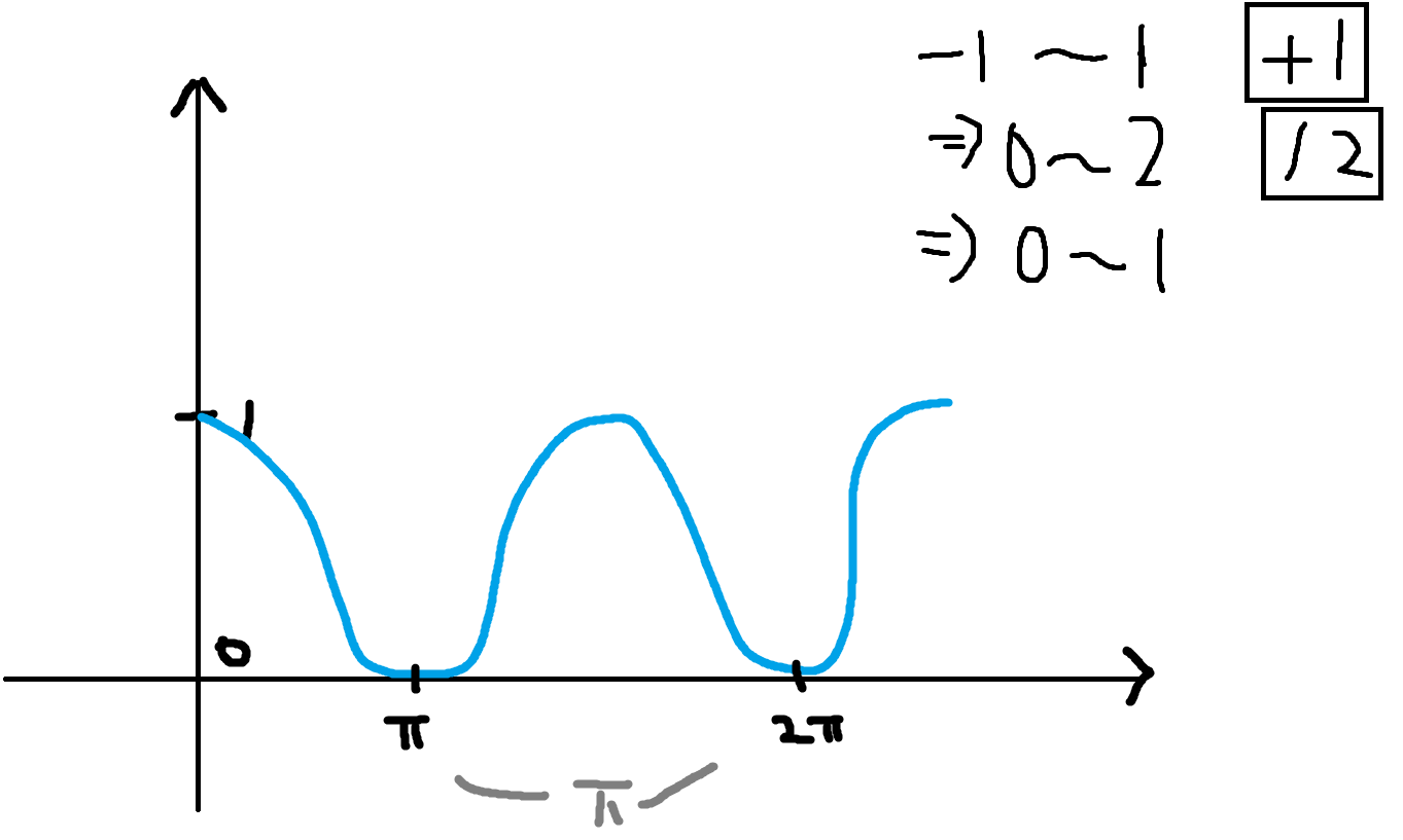 - Cos의 분자의 경우에는 ㅠ만큼 지나면 다시 0이 되는 것이니 경과 시간에 ㅠ를 곱해줬다.