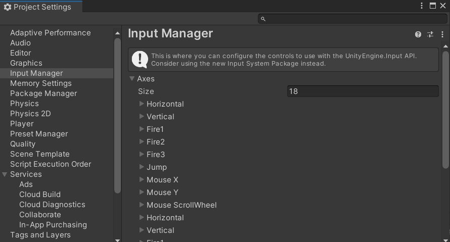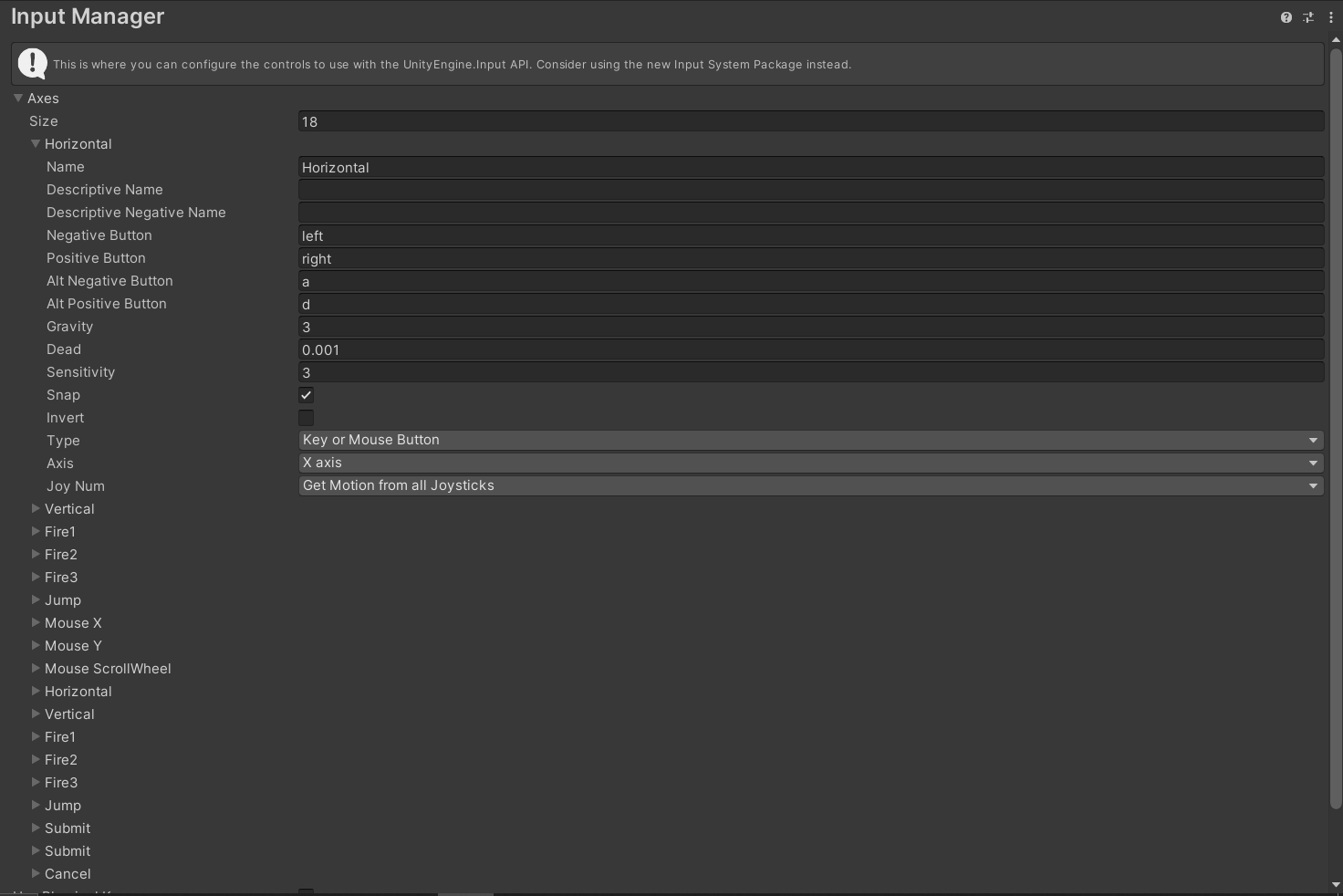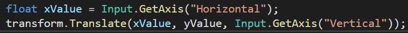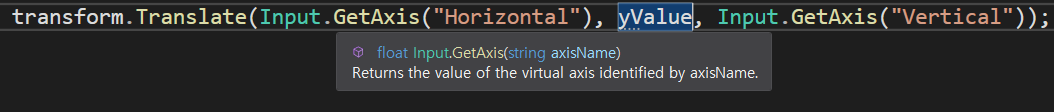 Axes내에는 여러 값들이 있는데 Horizontal과 Vertical을 이용하면 키보드로부터 좌우, 위아래 값을 받아올 수 있다.