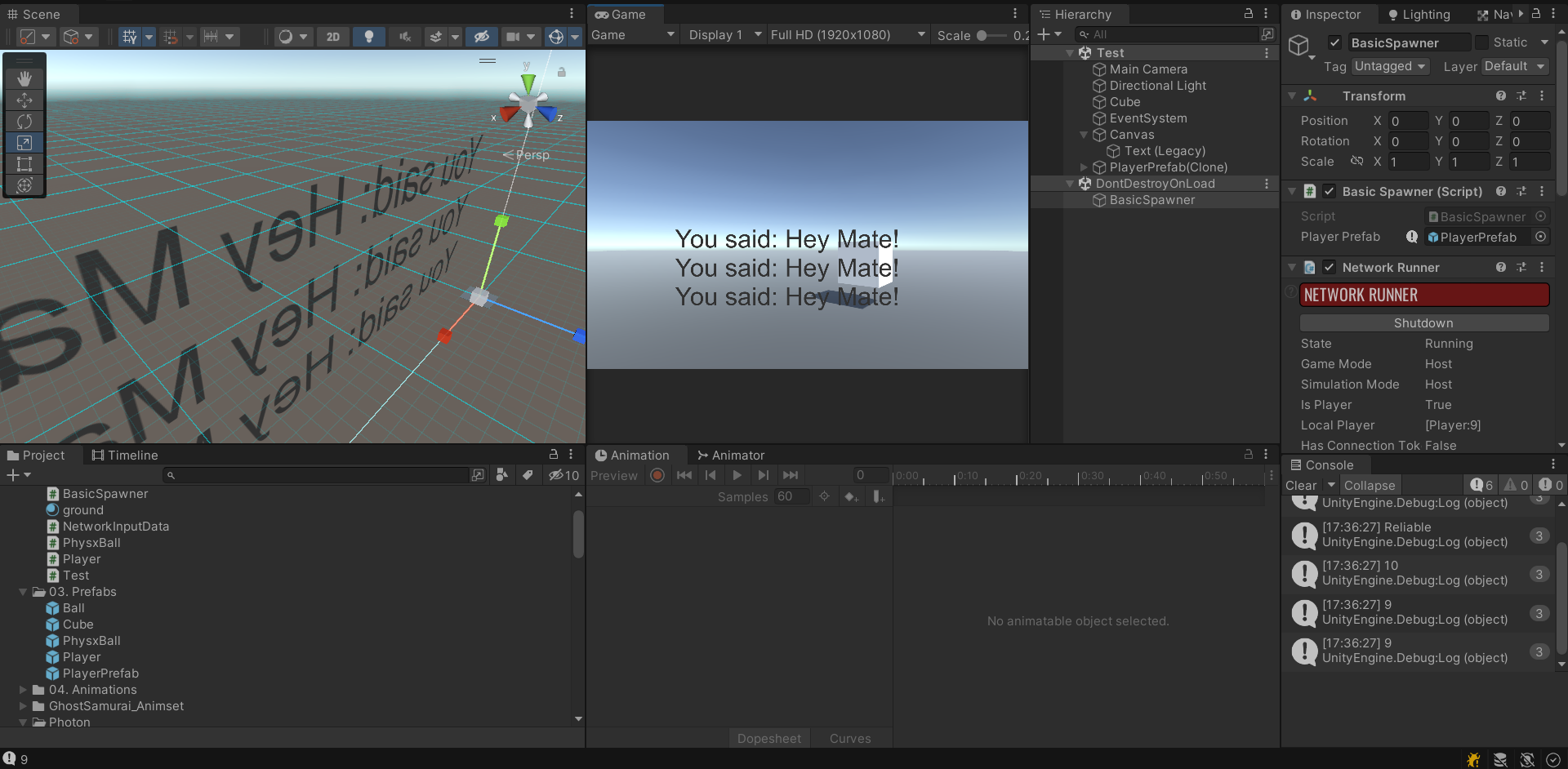 Runner.Spawn(_prefabPhysxBall, transform.position + _forward, Quaternion.LookRotation(_forward),