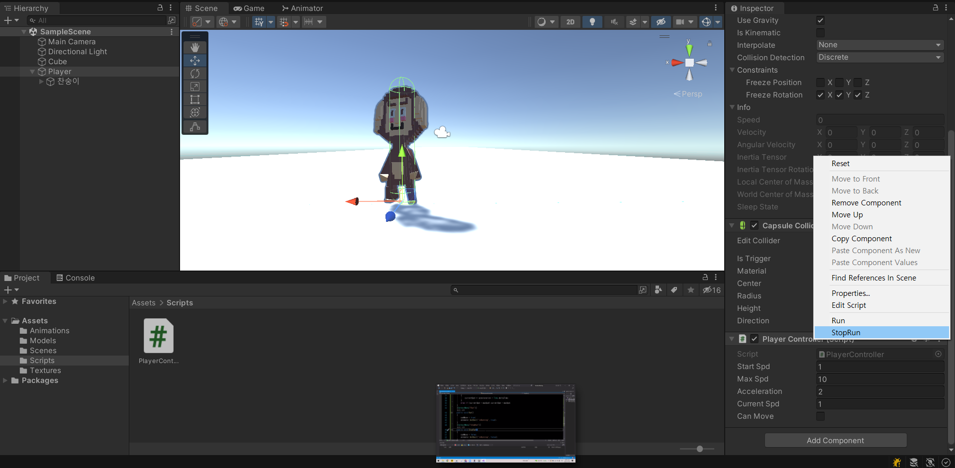 ContextMenu로 함수를 호출해 디버그를 할 수 있다는 것을 배웠고