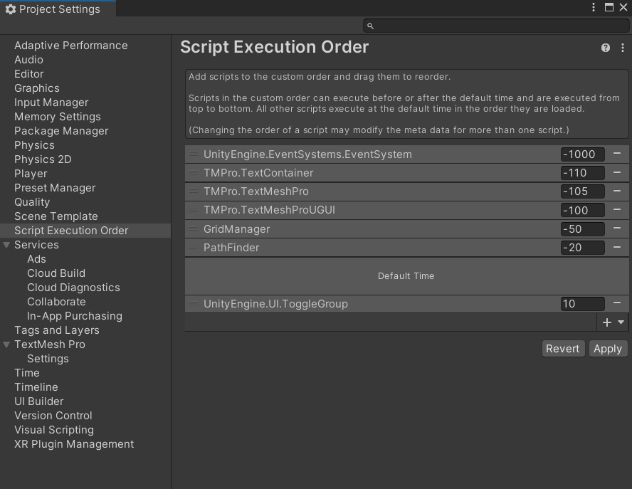 Edit - Project Settings - Script Execution Order에서 스크립트 실행 순서를 편집할 수 있다.