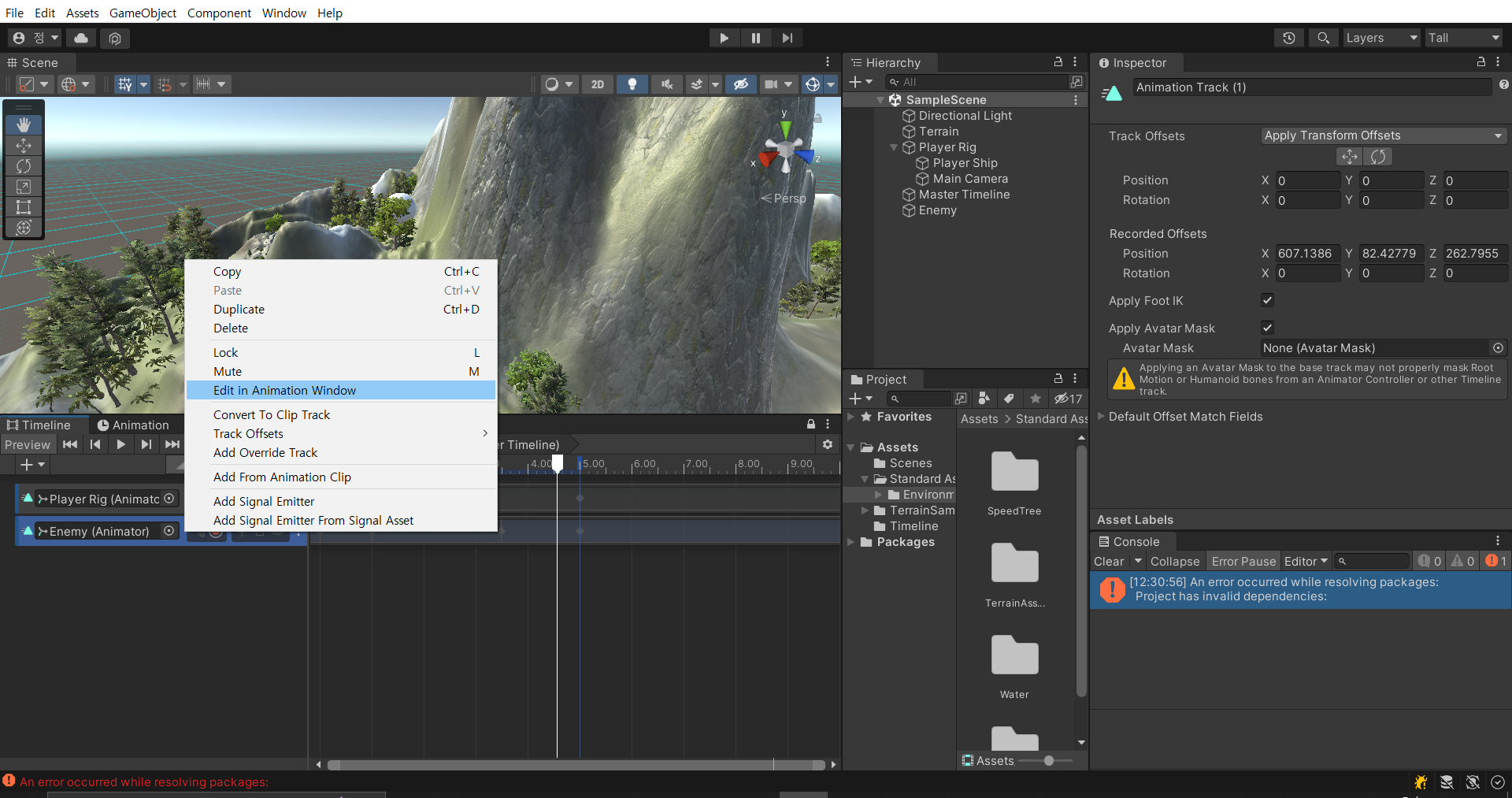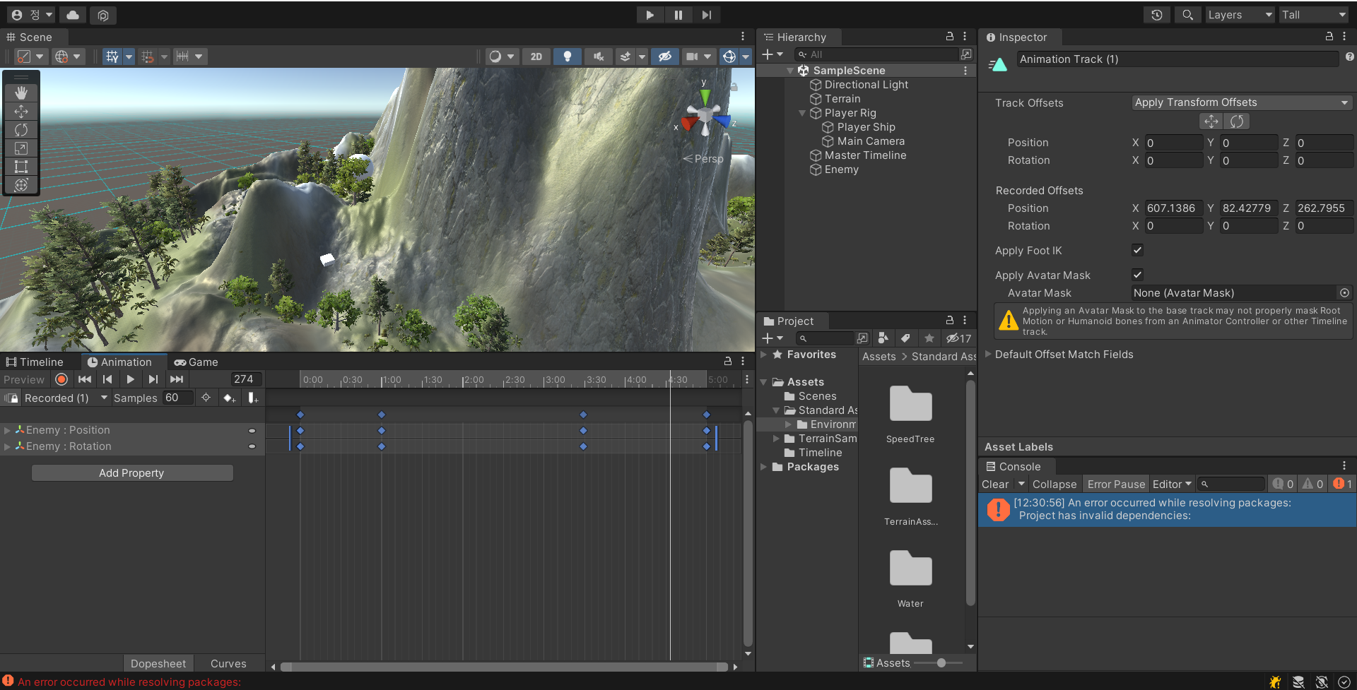 먼저 타임라인 이벤트 오브젝트의 위치를 정하고 좌측 상단의 +를 눌러 애니메이션 트랙을 생성해준다.