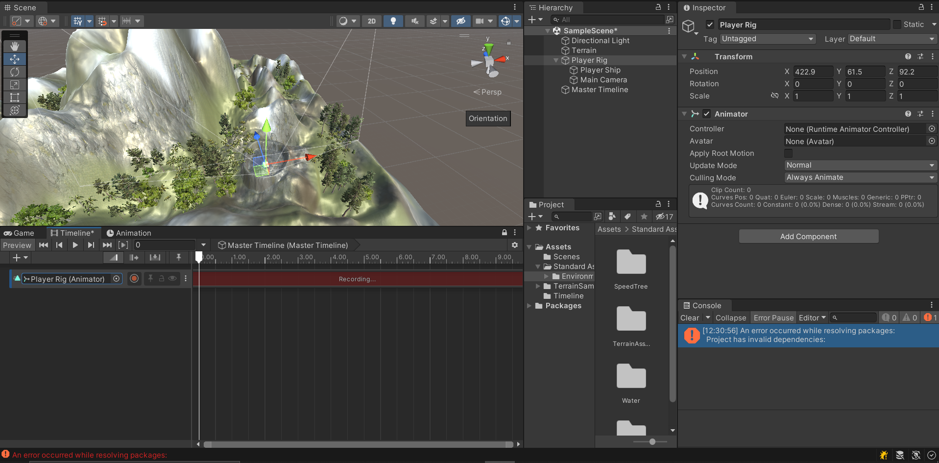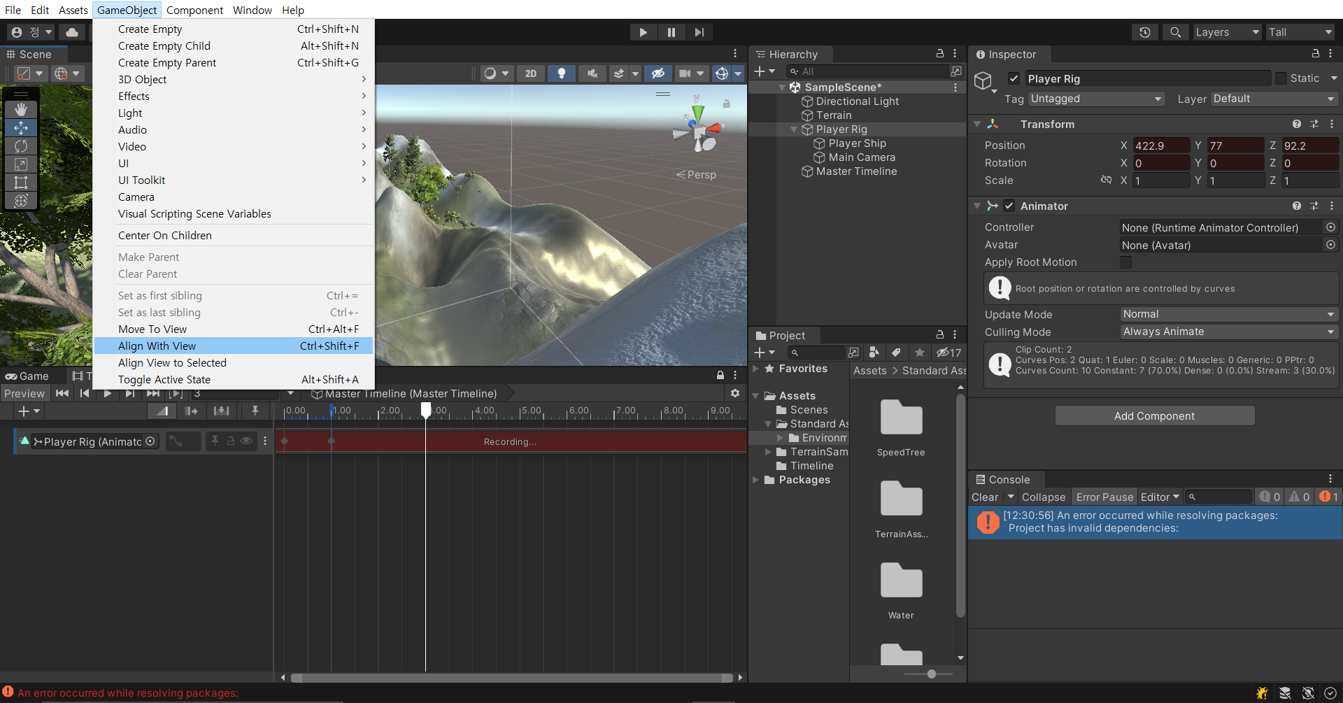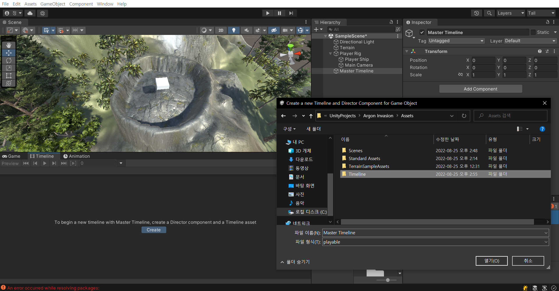 새 게임 오브젝트에 Create를 눌러 타임라인을 생성했다.