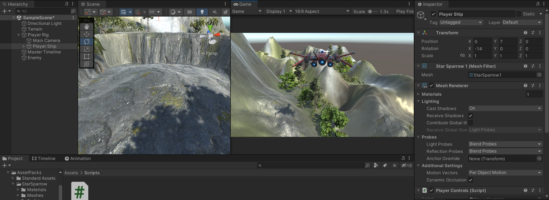 * 팁으로 마우스 우클릭 + Q나 E를 누르면 씬 카메라를 위 아래로 움직일 수 있다