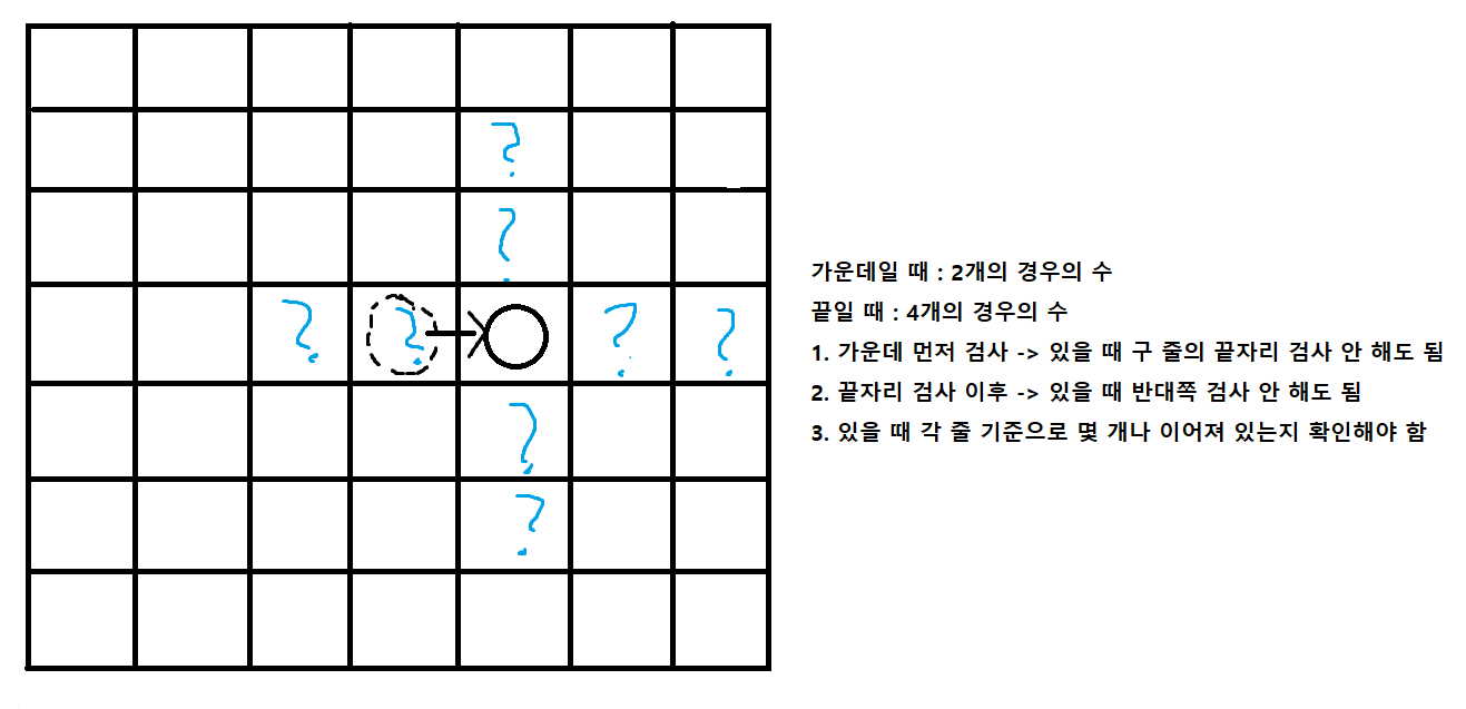 - 위의 내용처럼 가운데가 먼저 체크 되었을 때 연산을 줄이려고 했다.