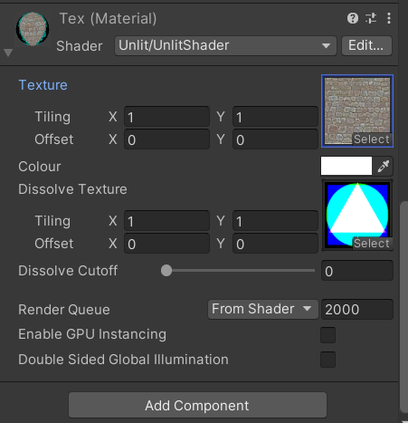 - frag의 return c - lerp~에서 위의 _DissolveTextrue의 빨간색 삼각형 부분을 빼줬다.