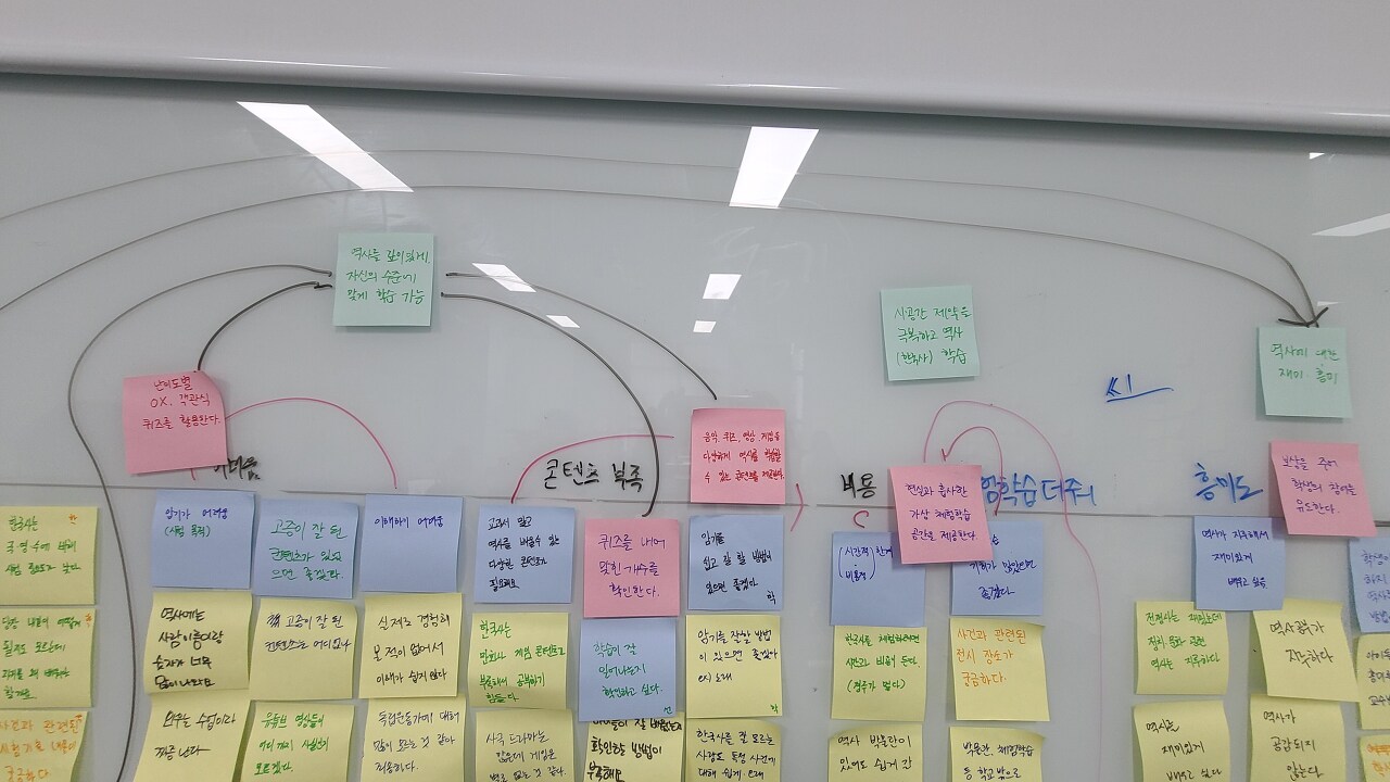 수강생들이 주도적으로 기획을 진행한다는 방식이 정말 새로웠고 그 과정에서의 어려움을 해결했을 때 정말 뿌듯했던 것 같다. 다음 주에도 주도적으로 수업과정을 참여하도록 해야겠다.