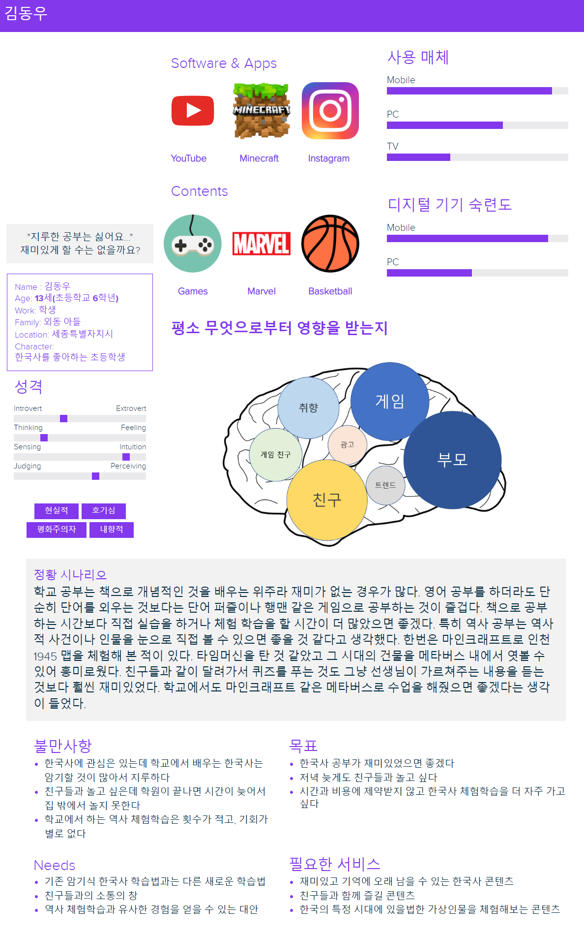 페르소나의 시나리오를 만듬(사용자의 불편함, 요구사항이 느껴지는 시나리오)