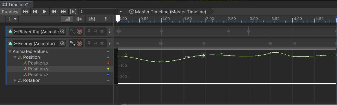 먼저 타임라인 이벤트 오브젝트의 위치를 정하고 좌측 상단의 +를 눌러 애니메이션 트랙을 생성해준다.