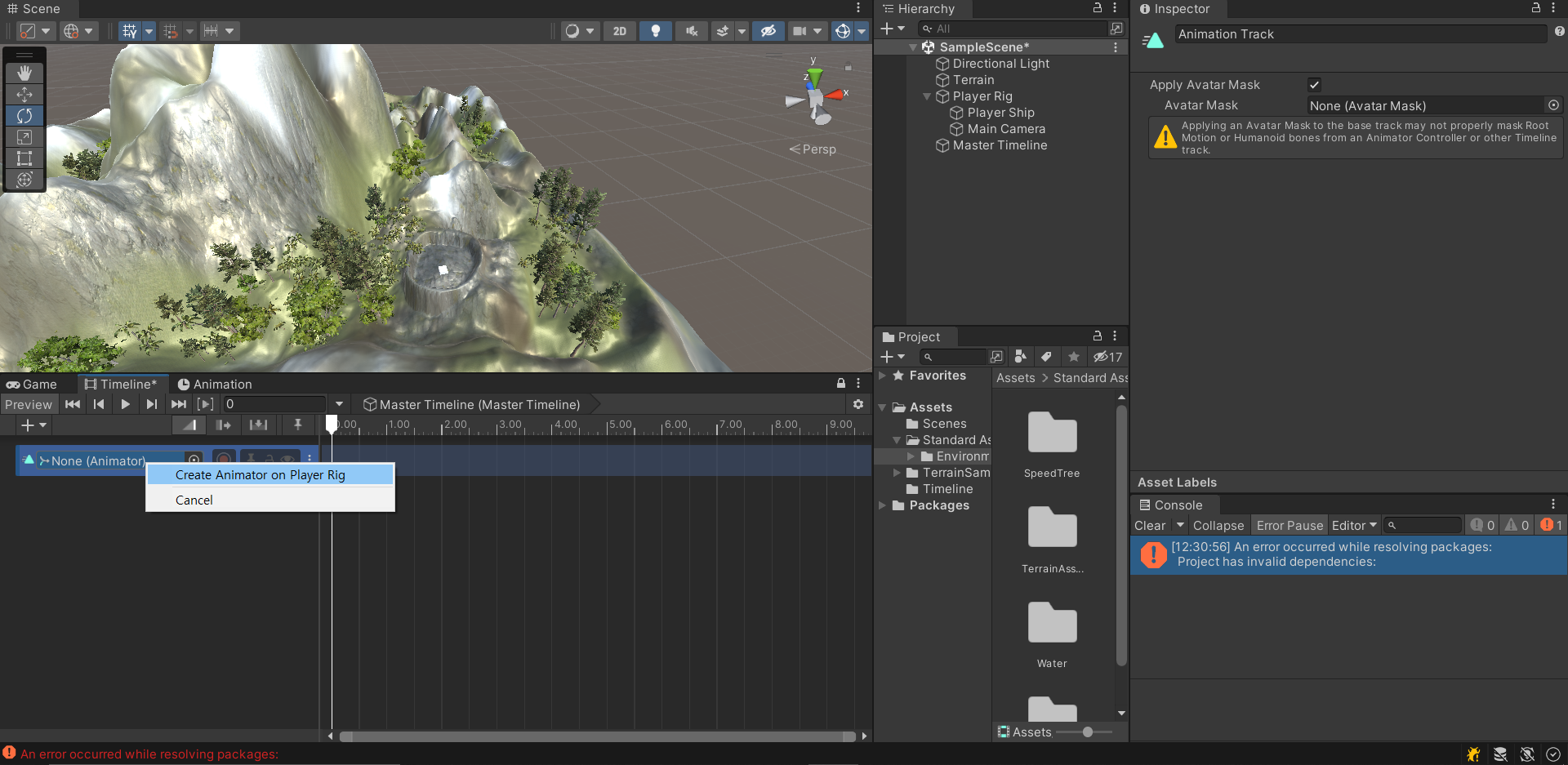 새 게임 오브젝트에 Create를 눌러 타임라인을 생성했다.