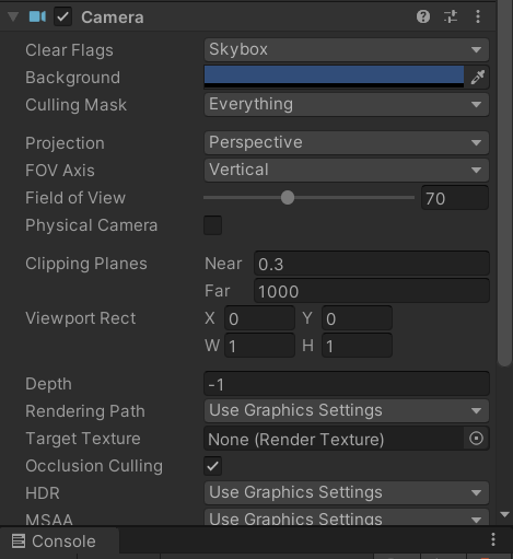 Camera의 Field of View 값을 늘리면 카메라 시점이 멀어지지만 더 빨라보이는 효과가 있다.