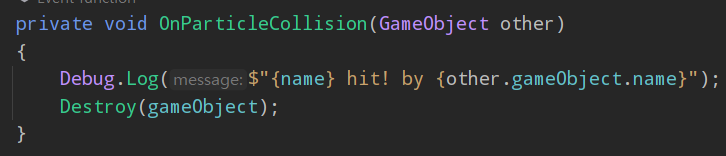 3. 타겟에 OnParticleCollision()을 사용하기