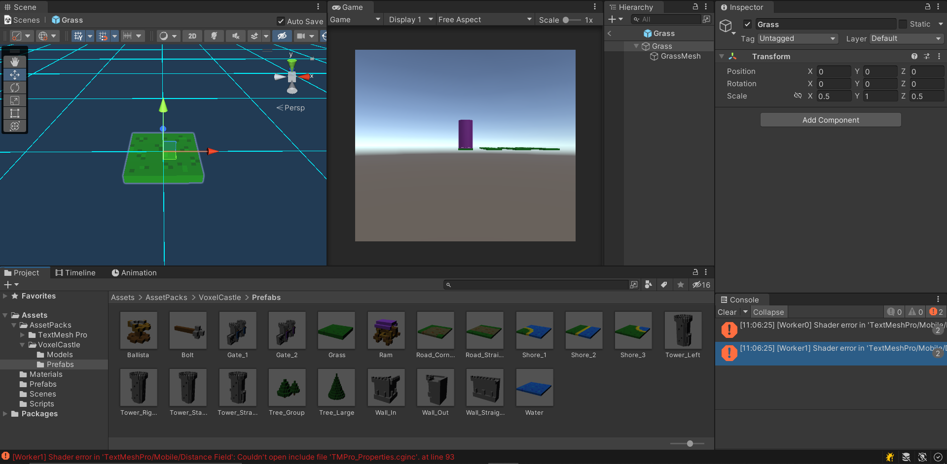 GrassMesh를 Grass 프리펩에 영향을 주지 않고 Tile 자식으로 만들고 싶으니 Prefab을 Unpack한다.