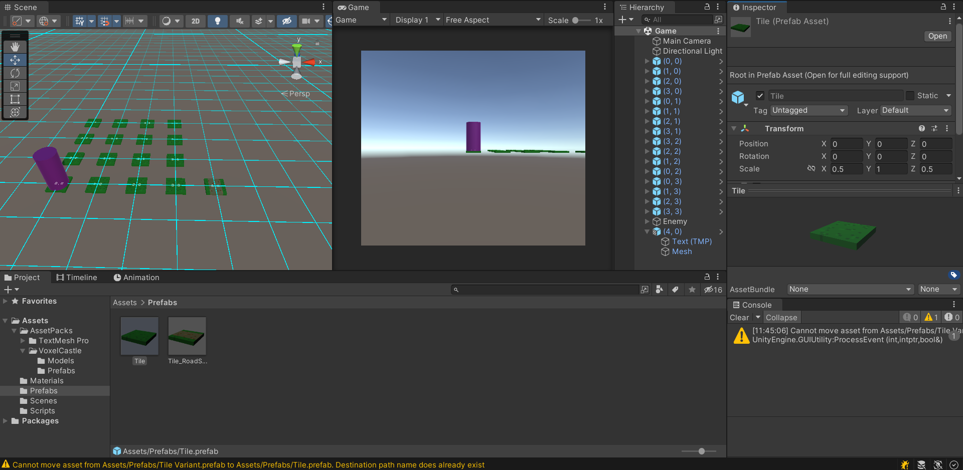 Tile 프리펩을 수정하면 Tile 프리펩의 Variant인 Tile_RoadStraight도 변경사항이 적용되게 된다.(둘은 연결되어 있음)
