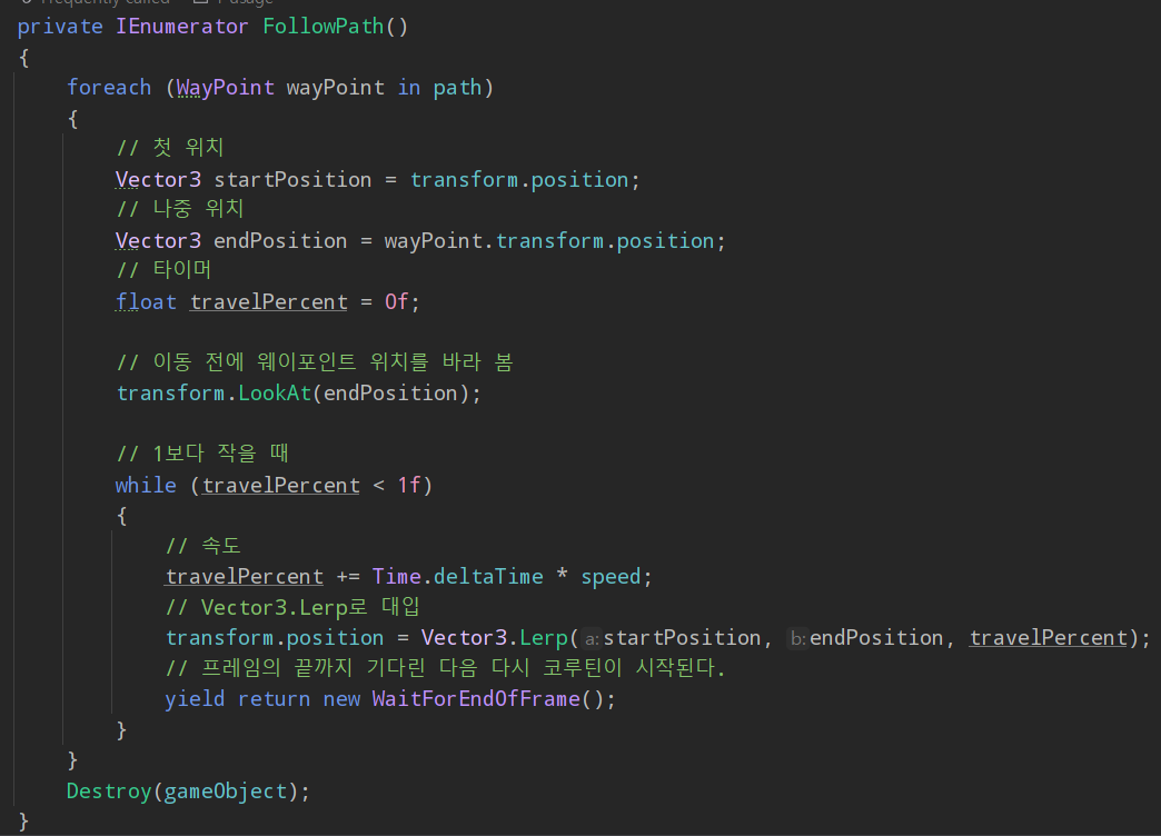 경로 루프가 끝난 후 적을 Destroy하게 한다.