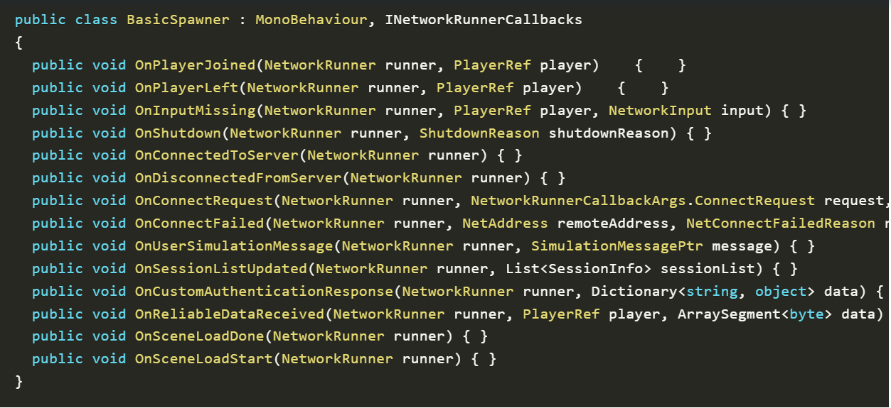 포톤 퓨전은 INetworkRunnerCallbacks를 사용하여 동기화 작업을 하는 것 같다.
