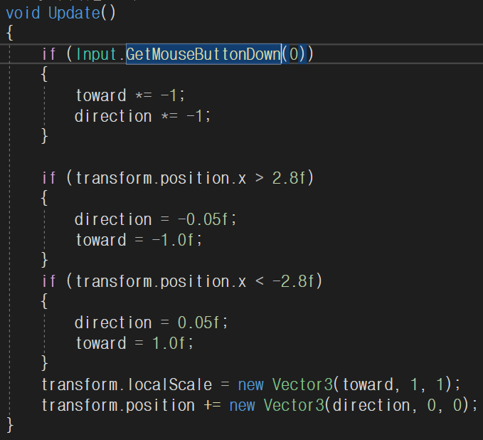 아래 코드처럼 Time.deltaTime이 곱해져 있지 않으며 Update안에서 동작하는 르탄이의 이동은 TimeScale에 영향을 받지 않으므로 TimeScale = 0; 이더라도 움직인다.