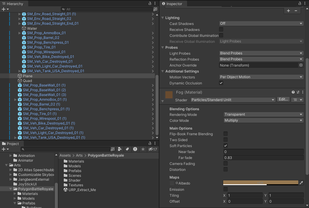 포스트 프로세싱을 이용한 Fog 효과가 아닌 간단한 Material을 이용해 Fog를 사용하는 것이 성능상 유리하다고 하여 적용해보기로 했다.