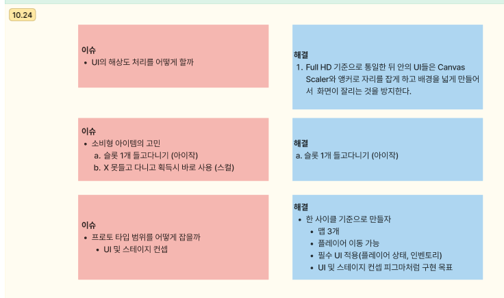 내일은 플레이어 이동을 구현해서 팀원이 만든 맵에 테스트를 해보고 시간이 남으면 조이스틱에 연동까지 할 수 있도록 해야겠다. 내일도 파이팅!