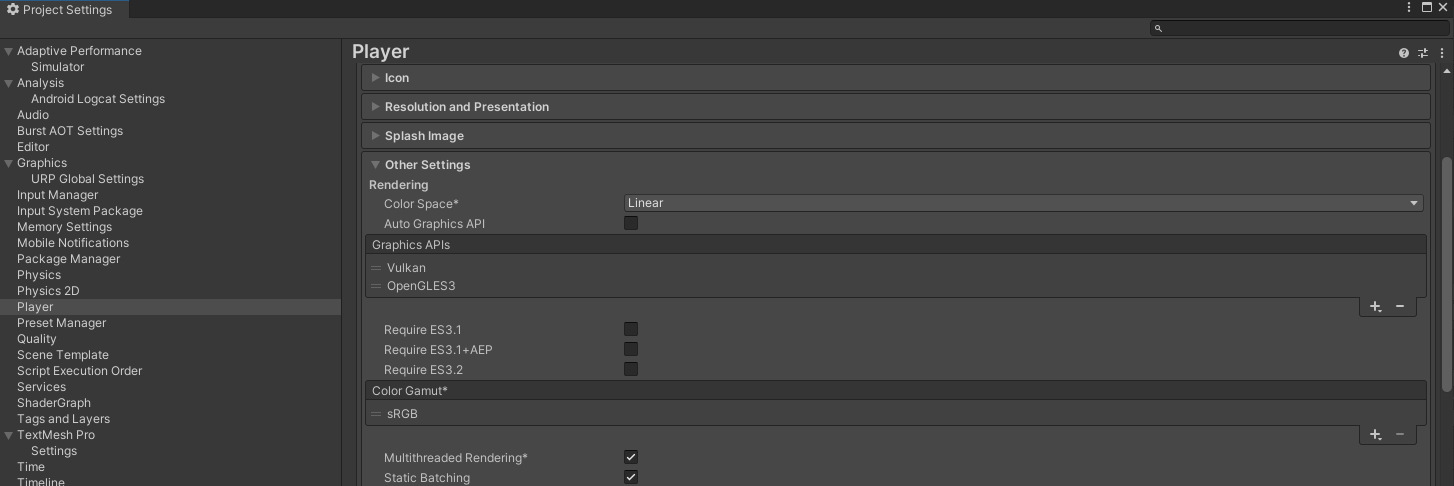 - Project Settings - Player - Other Settings - Static Batching 체크