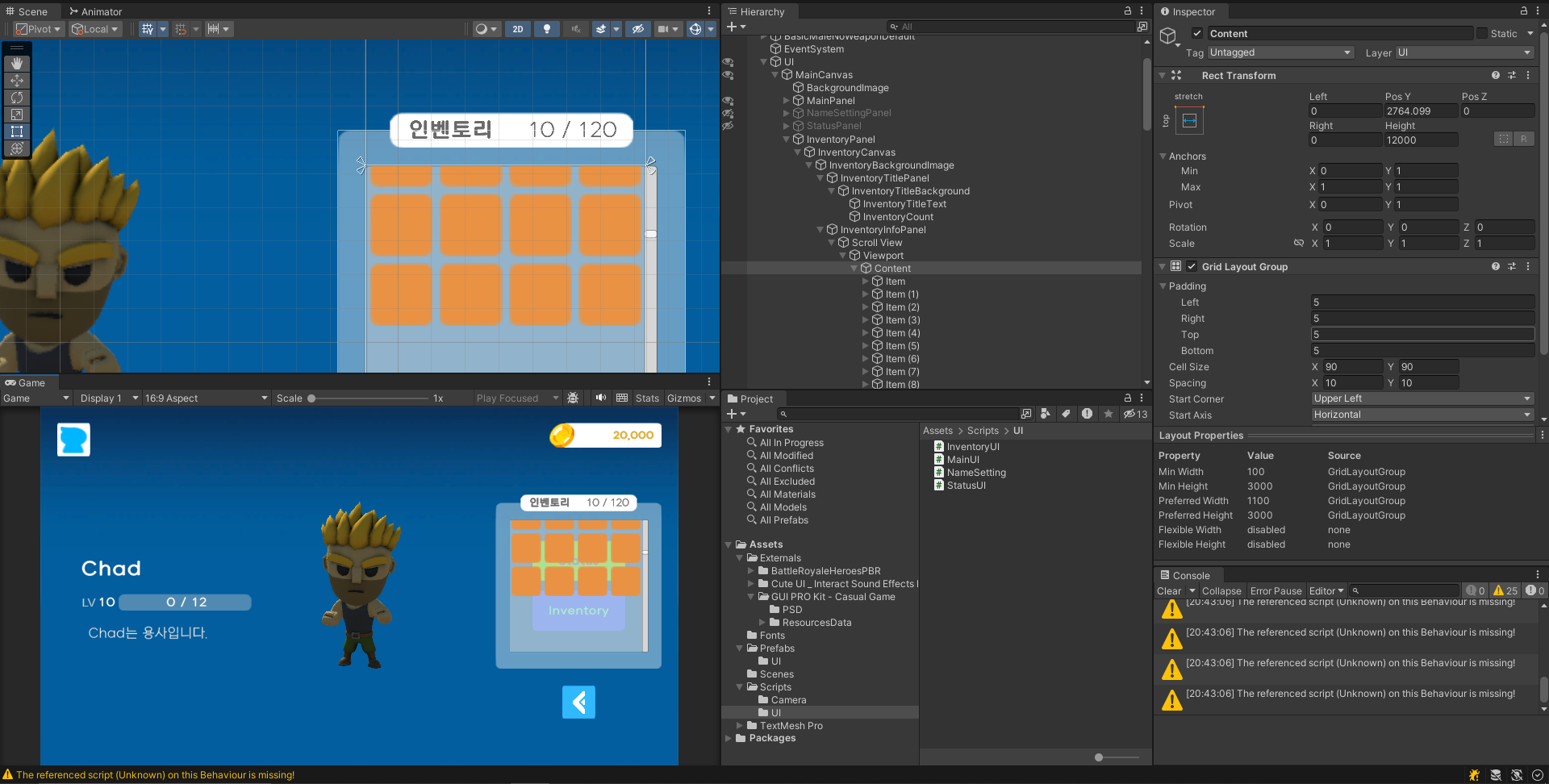 이후에 게임을 시작하면 사이즈에 맞게 Height가 조절된 것을 볼 수 있다.